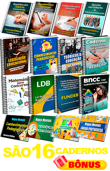 Estude com nossos Cadernos Preparatórios para Concursos Públicos nas carreiras educacionais e tenha mais chance de ser aprovado em 2025. Material 100% de acordo com o edital.
